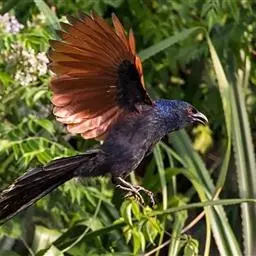 褐翅鸦鹃,是鹃形目鸦鹃科鸦鹃属的鸟类。褐翅鸦鹃的身体为黑色;头颈和胸带蓝紫色金属光泽并具黑亮的羽干纹,…