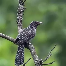 大杜鹃:是普通杜鹃的中国亚种。体长约320毫米,翅长约210毫米。雄鸟上体纯暗灰色;两翅暗褐,翅缘…
