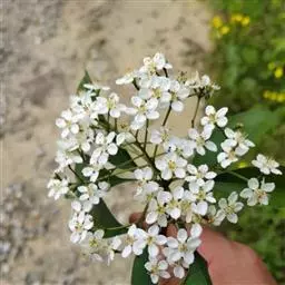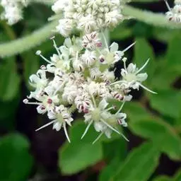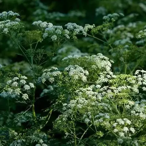 复伞形花序,花序梗长10-55厘米,有糙硬毛;总苞有多数苞片,呈叶状,羽状分裂,少有不裂的,裂片线形,长3-30毫米;伞辐多数,长2-7.5厘米,结果时外缘的伞辐向内弯曲;小总苞片5-7,线形,不分裂或2-3裂,边缘膜质,具纤毛;花通常白色,有时带淡红色;花柄不等长,长3-10毫米。果实圆卵形,长3-4毫米,宽2毫米,棱上有白色刺毛。花期5-7月。