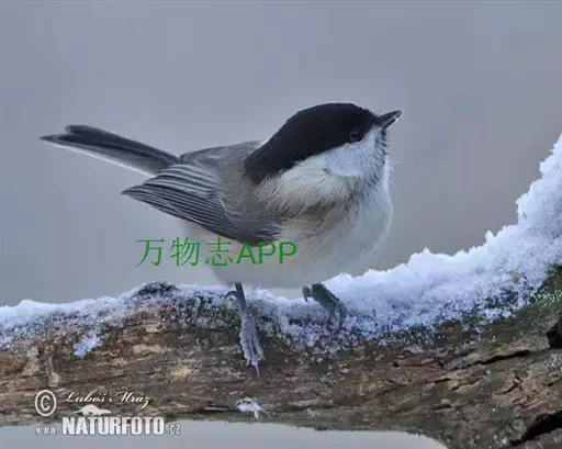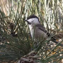 沼泽山雀(学名:Poecile palustris):体重10-14克,体长113-138毫米。是一种体形比大山雀稍小的鸟类。前额、头顶至后颈辉黑色,眼以下脸颊至颈侧白色,上体沙灰褐色。颏、喉黑色,其余下体白色或苍白色。相似种煤山雀上体较灰,翅上有两道白色翅带,脸部白部不与下体联通。