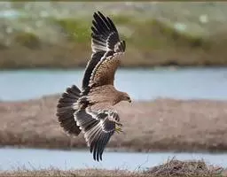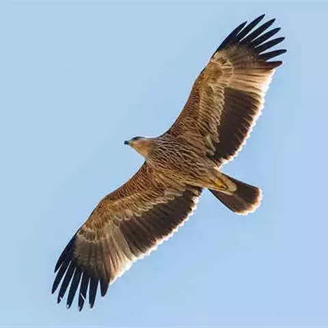 白肩雕:又名御雕,是大型猛禽。体长73-84厘米。体羽黑褐色,头和颈较淡,肩部有明显的白斑,在黑褐…