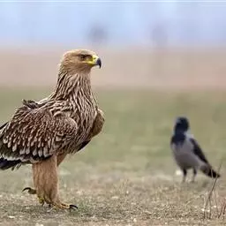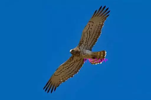 短趾雕(学名:Circaetus gallicus):体长62-70厘米,体重1.2 - 2.3千克。它们的颔、颈和胸部上方呈浅棕色。头部浑圆像猫头鹰般,眼睛呈鲜黄色。身体沉重,上体灰褐,下体白而具深色纵纹,喉及胸单一褐色,腹部具不明显的横斑,尾具不明显的宽阔横斑。虹膜黄色;嘴黑色;蜡膜灰色;脚偏绿。