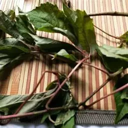 木质藤本。小枝圆柱形,有纵棱纹,被疏柔毛。卷须2-3叉分枝,相隔2节间断与叶对生。叶为掌状5小叶,小叶3-5羽裂,披针形或菱状披针形,长4-9厘米,宽1.5-6厘米,顶端渐尖,基部楔形,中央小叶深裂,或有时外侧小叶浅裂或不裂,上面绿色无毛或疏生短柔毛,下面浅绿色,无毛或脉上被疏柔毛;小叶有侧脉3-6对,网脉不明显;叶柄长1.5-2.5厘米,无毛或被疏柔毛,小叶几无柄;托叶膜质,褐色,卵披针形,长约2.3毫米,宽1-2毫米,顶端钝,无毛或被疏柔毛。其根部外皮紫褐色,内皮淡粉红色,具粘性。茎细长,圆柱形,有皮孔,长4米左右,卷须与叶对生。