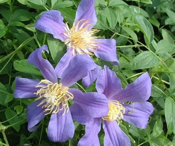 铁线莲垂直绿化的主要方式有廊架绿亭、立柱、墙面、造型和篱垣栅栏式。廊架绿亭式,利用于花架、棚架、廊、灯柱、栅栏、拱门等配置构成园林绿化独立的景观,既能满足游人的观赏,又能够乘凉,既增加了绿化量,又改善了环境条件。可选择那些生长旺盛、枝叶浓密且花朵艳丽的观赏类型。立柱式,攀缘能力强、抗污染、适应性强并具有一定耐荫能力的观赏类型可用于各种立柱的绿化。悬挂垂吊式墙面绿化,可采用枝条长度1m左右的铁线莲观赏类型。篱笆栅栏式,用色彩调和的观赏类型与蔷薇搭配,能够带给人不同凡响的景观效果。
