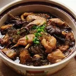 小鸡炖蘑菇是一道东北炖菜。通常是用干蘑菇、鸡肉和粉条一同炖制而成。榛蘑可以衬托出鸡肉的鲜香,粉条滑…