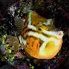 额斑刺蝶鱼,体卵圆形侧扁,有鲜明蓝色轮廓和数条鲜蓝竖纹,全身密布网格状具蓝色边缘的珠状黄点,深蓝色…
