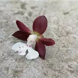 花瓣倒卵状披针形,长11-15毫米,中部宽3-5毫米,先端锐尖或稍钝,基部收狭为爪,具3条脉,无毛;唇瓣红褐色,基部合生于整个蕊柱翅上,3裂;侧裂片小,耳状或近半圆形,长约4毫米,宽4-5毫米;中裂片肾形,长8-10毫米,宽10-18毫米,先端微凹并具短尖,边缘强烈波状;唇盘上具3-5条鸡冠状褶片,无距;蕊柱粗短,长约6毫米,腹面疏生毛;蕊喙2裂;裂片三角形,长约1毫米,先端急尖;药帽在前端收狭呈喙状;花粉团狭倒卵状球形,长约2毫米,具明显的柄;粘盘小,椭圆形,长约1毫米。花期5-6月。