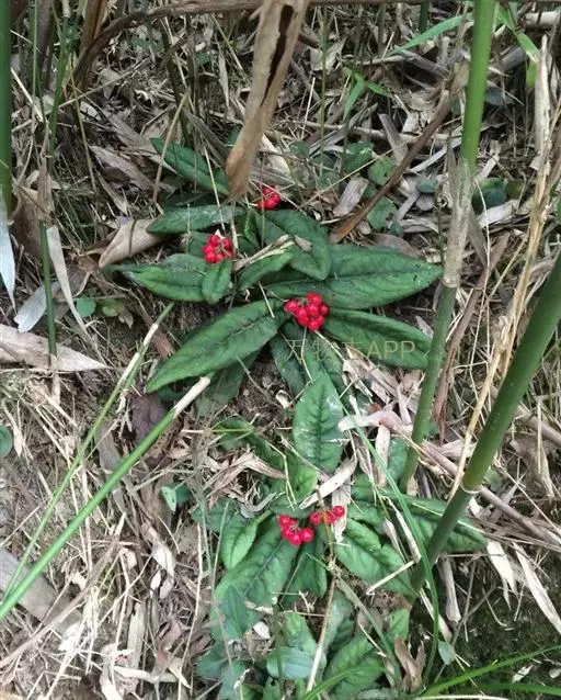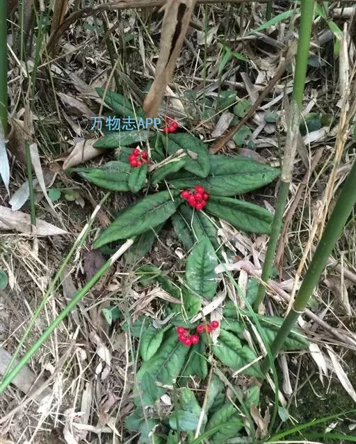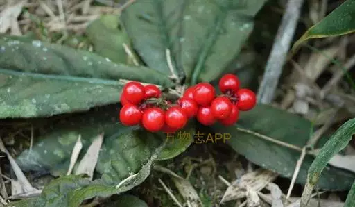 出自《本草图经》:百两金,叶似荔枝,初生背面俱青,结花实后,背紫面青。苗高二、三尺,有干如木,…