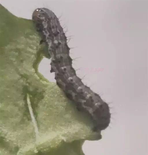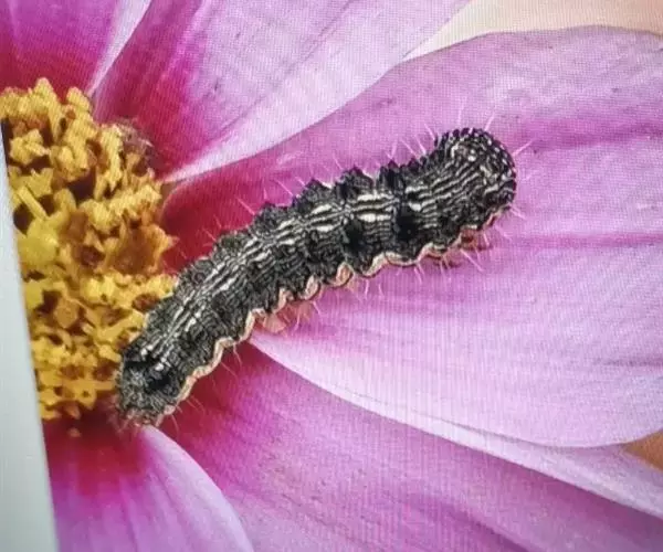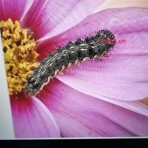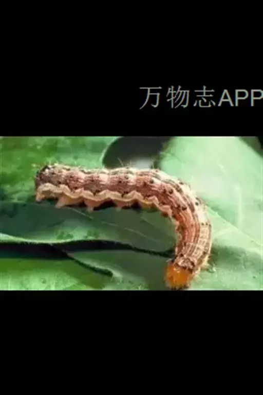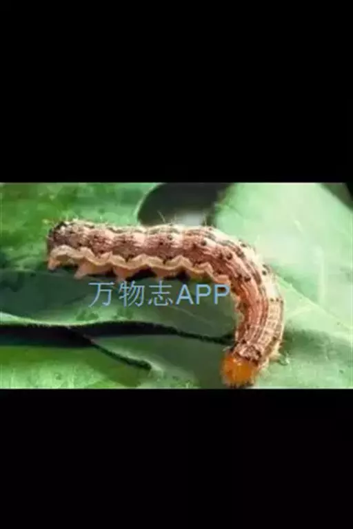幼虫:老熟幼虫长约40~50mm,初孵幼虫青灰色,以后体色多变,分4个类型:1)体色淡红,背线,亚背线褐色,气门线白色,毛突黑色。2)体色黄白,背线,亚背线淡绿,气门线白色,毛突与体色相同。3)体色淡绿,背线,亚背线不明显,气门线白色,毛突与体色相同。4)体色深绿,背线,亚背线不太明显,气门淡黄色。头部黄色,有褐色网状斑纹。虫体各体节有毛片12个,前胸侧毛组的L1毛和L2毛的连线通过气门,或至少与气门下缘相切(区别于烟夜蛾)。体表密生长而尖的小刺。