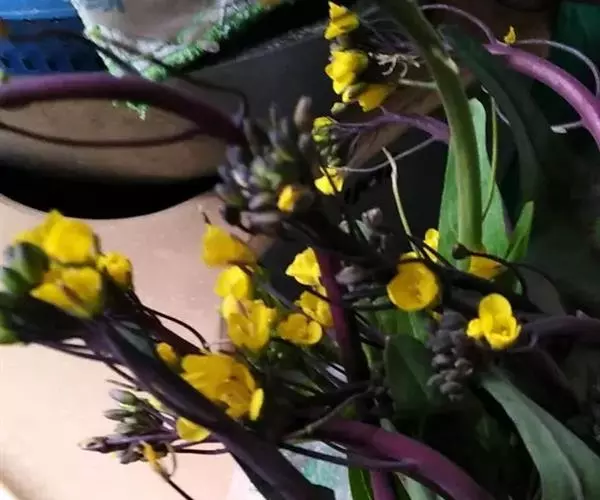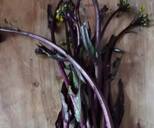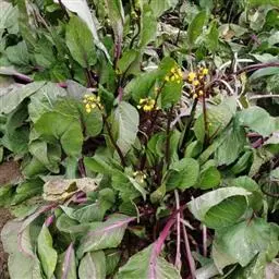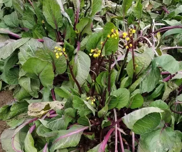 (4)采收:秋茬紫菜薹主薹采收后,正值侧菜薹盛发期时,气温下降,生长缓慢,因此主薹要更早采收,达15厘米长后即采摘,促使侧薹早发快长。一般只能收1次或2次侧薹,采收期较短,产量较春茬低,但采收期处于较低的温度,菜薹的品质较好。