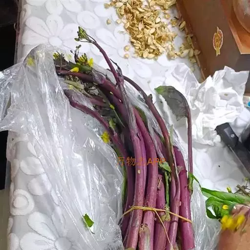 紫菜薹,别名红菜薹、红菜、红油菜薹,它与广东菜心是属于同一变种,为十字花科芸薹属芸薹种白菜亚种的变种,一二年生草本植物,是原产中国的特产蔬菜,主要分布在长江流域一带,以湖北武昌和四川省的成都栽培最为著名。