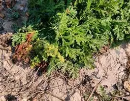 红菜薹的根系不发达,无明显的主根。根系入土深度40cm左右,横向伸展半径40cm。叶有二种:一种为莲座叶,是制造营养的器官,多为桃心圆形叶,卵圆形,且有明显2~3片大裂片和多个小裂片。花薹上着生的叶片称为薹生叶,薹生叶也为食用部分,薹生叶呈卵圆形或呈披针形,一般细小无裂片,薹生叶柄短以至退化。茎有二种:一为粗壮的短缩茎,短缩茎一般长12cm左右,直径5.0cm,其上着生叶片,且抽生花薹。二为花薹茎,包括主花薹和侧花薹均从短缩茎上发生。花薹茎肥嫩,末木质化之前为红菜薹的食用部分,花薹一般在25~35cm长采收为宜,这时,花薹最肥大处直径为1.5~2.5cm,有幼嫩叶3~5片,花薹梢有花蕾,3~5朵黄色小花开放,外观艳人。