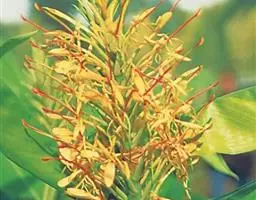 姜花喜欢在温暖、潮湿的环境里安居,举凡塘边、湖畔、涌头就最适宜栽种姜花了。它的花不能结实,以分株繁殖为主,春季切取根茎繁殖,可直接盆栽或地栽,当年夏季可以开花。一般隔3-4年分株1次。即是把带芽的根茎切出,每十多厘米为一段,每隔30厘米种一段,在种植前,最好尽量多施基肥,种后淋足水分,经过20—30天就可发芽生长。在岭南各地,四季皆可定植。 但在春季成活率最高,如能在“清明”种下,“立秋”就可开花,到第二年开花最盛,第三年后根茎开始老化,开花就逐渐省了,届时将要重新再种。至于家庭盆栽,常因泥少肥缺,株高根多,生态环境不宜而难以获得大花。刚栽植时不宜浇水过多,以免根茎切口腐烂。生长期需经常保持土壤湿润。夏季花期应适当遮阴,可延长开花期。冬季将茎枝剪除,以便翌年萌发新枝。寒冷地区,冬季挖取根茎放室内贮藏。 栽培要点 1、种苗繁殖技术 分有性繁殖和无性繁殖。采用分株繁殖法繁殖速度也快。室外可以越冬的地区 四季都可以种植 从成年植株丛中截取分株,当年2、3月份种植,7、8月份即可开花,全年每根可分生新株达到20-40株左右,开花质量好、产量也高。但在湖北赤壁地区实际是每年11月到第2年3月份栽 6到7月就可以开花。一直陆续开花到打大霜地上部分才枯萎。到第二年每亩可以产花高达三万二千枝到三万八千枝。产花根三万五到四万根左右。每5到10厘米为一根(颗) 2、种植季节及种植方式 金姜花对土壤适应性强,栽培土质以肥沃疏松、排水良好之壤土或砂质壤土最为适宜,但土壤应经常保持湿润或靠近水源,则生育更旺盛。春、夏、秋三季均可种植,但以春季2、3月份种植最好,分株种植当年即可获取高产。当年亩产平均近2000枝/月,第二年亩产可达2200枝/月以上。种植前深翻土地,施足基肥,起深沟高畦,采用单行植或双行植,定植株行距50×50cm,亩植2500~3000株。如肥水管理条件好,当年5月下旬即可开花。定植一株幼苗或根茎,全年可分生新株达20~40株左右,约长至15片叶以上可开花。
