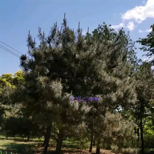 油松(学名:Pinus tabuliformis Carr.) :为松科针叶常绿乔木,高达30米,胸径可达1米。树皮下部灰褐色,裂成不规则鳞块。大枝平展或斜向上,老树平顶;小枝粗壮,雄球花柱形,长1.2-1.8厘米,聚生于新枝下部呈穗状;球果卵形或卵圆形,长4-7厘米。种子长6-8毫米,连翅长1.5-2.0厘米、翅为种子长的2-3倍。花期5月,球果第二年10月上、中旬成熟。
