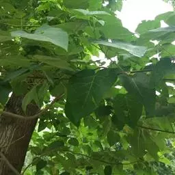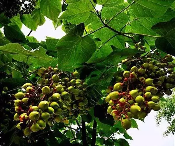乔木高达20米,树冠宽大伞形,树皮褐灰色;小枝有明显皮孔,幼时常具粘质短腺毛。叶片心脏形,长达40厘米,顶端锐尖头,全缘或波状浅裂,上面毛稀疏,下面毛密或较疏,老叶下面的灰褐色树枝状毛常具柄和3-12条细长丝状分枝,新枝上的叶较大,其毛常不分枝,有时具粘质腺毛;叶柄常有粘质短腺毛。