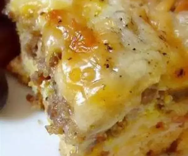 1.轻煮意大利粉,用凉水洗净沥干水分。搅拌蛋黄,全脂牛奶和干酪。混合在意大利粉之内。放入比萨煎锅。控制在350°F(175°D)炉25分钟。