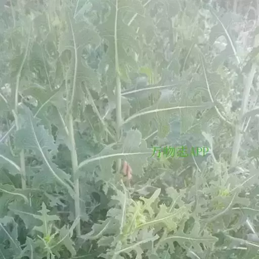一年生草本,高50-80厘米。茎单生,直立,无毛或有时有白色茎刺,上部圆锥状花序分枝或自基部分枝。中下部茎叶倒披针或长椭圆形,长3-7.5厘米,宽1-4.5厘米,倒向羽状或羽状浅裂、半裂或深裂,有时茎叶不裂,宽线形,无柄,基部箭头状抱茎,顶裂片与侧裂大等大,三角状卵形或菱形,或侧裂片集中在叶的下部或基部而顶裂片较长,宽线形,侧裂片3-6对,镰刀形、三角状镰刀形或卵状镰刀形,最下部茎叶及接圆锥花序下部的叶与中下部茎叶同形或披针形、线状披针形或线形,全部叶或裂片边缘有细齿或刺齿或细刺或全缘,下面沿中脉有刺毛,刺毛黄色。头状花序多数,在茎枝顶端排成圆锥状花序。总苞果期卵球形,长1.2厘米,宽约6毫米;总苞片约5层,外层及最外层小,长1-2毫米,宽1毫米或不足1毫米,中内层披针形,长7-12毫米,宽至2毫米,全部总苞片顶端急尖,外面无毛。舌状小花15-25枚,黄色。瘦果倒披针形,长3.5毫米,宽1.3毫米,压扁,浅褐色,上部有稀疏的上指的短糙毛,每面有8-10条高起的细肋,顶端急尖成细丝状的喙,喙长5毫米。冠毛白色,微锯齿状,长6毫米。花果期6-8月。