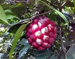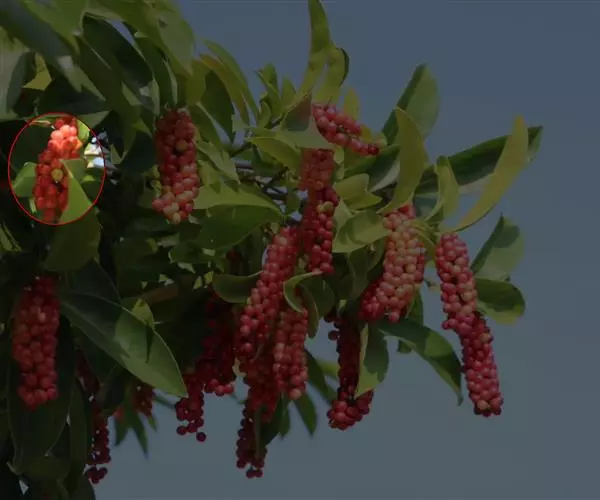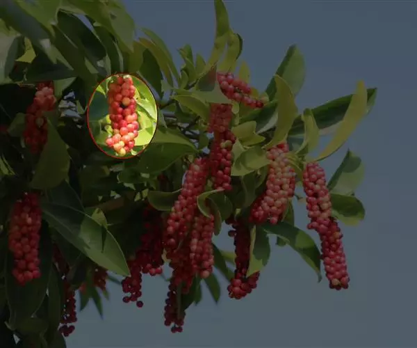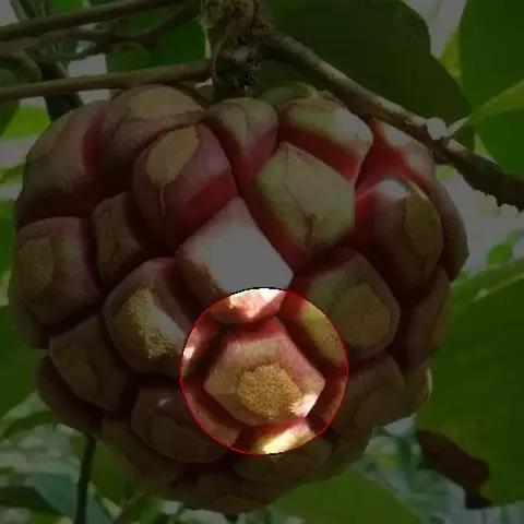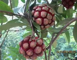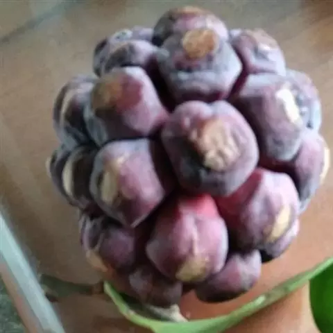 聚合果近球形,直径2.5-4厘米;成熟心皮倒卵圆形,长10-22毫米;干时革质而不显出种子;种子2-3粒,少有4-5粒,长圆状肾形,长5-6毫米,宽3-5毫米。花期5-8月,果期8-12月。