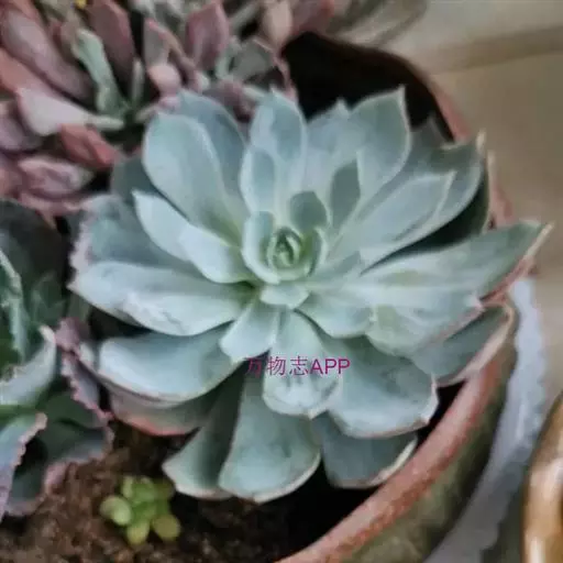 皮氏石莲是景天科、拟石莲花属的多肉植物,也被称作蓝石莲。莲座中小型,直径10-15厘米,灰绿色的叶片被有一层淡蓝色的霜粉,在阳光充足且具一定温差的环境下会变成粉红色。