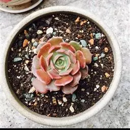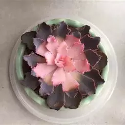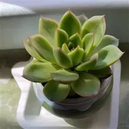 蓝石莲光照足叶子的颜色将更加鲜艳,非常漂亮。不论放置什么位置,用手感觉表土稍微干燥再浇水,忌频繁浇水。 养在阳光房内,一旦温度高于35度,就会移到明亮的散射光下慢慢少水,因为花季是夏季,花开后就慢慢要有短暂的休眠了,整个夏季短暂的休眠期少水或不给水,到了9月中旬温度下来了,就开始慢慢恢复浇水,适应了阳光房的蓝石莲夏天是可以正常生长的,休眠不是非常明显,但是夏天水分千万不要弄到叶心,不然在夏天就会挂了,生长期叶片可以喷到水。冬季如果温度能够保持0度以上,都是可以给水的,0度以下就要断水,否则就容易冻伤了。冬季虽然寒冷,可也不是一个冬季都不给一点水,也会在适当的时候微微给点水在植株的根部,切勿喷雾或给大水,冬季叶心水分停留太久,也容易引起腐烂,水大还会烂茎。春季温度上升后就可以慢慢恢复正常给水。蓝石莲是比较好养的一个品种,四季中除了夏季要注意适当遮阳,其他季节都可以全日照。土壤用的是泥炭混合了颗粒的煤渣河沙等,土表铺设干净的颗粒河沙,配土以透气为主。 有着非常特别的粉色叶片,较少见的品种。光照不足的话,会变成蓝绿色。需要用排水透气性很好的植料种植。生长季节是春秋两季,土完全干透后再浇透水。夏季需要遮阴,并控制浇水。冬季放于室内向阳处养。