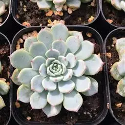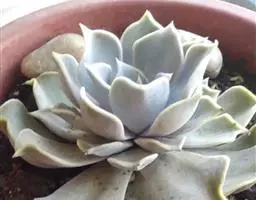 蓝石莲需要接受充足日照叶色才会艳丽,株型才会更紧实美观。日照太少则叶色浅,叶片排列松散,拉长,叶片变薄。蓝石莲是中大型植株,随着生长的状态可以1-3年换盆一次,盆径可以比株径大1~2寸,这样可促进植株成长。介质一定要乾燥后才浇水,可以施用缓效肥。 生长适温15-25度,冬季不低于5度;配土一般用泥炭+蛭石+珍珠岩各一份,并添加适量的骨粉,也可用腐叶土3份、河沙3份、园土1份、炉渣1份混合配制;生长期浇水干透浇透,空气干燥时可向植株周围洒水,但叶面,特别是叶丛中心不宜积水,否则会造成烂心,夏季高温要适度遮阴,通风和节水;生长期施肥一般每20天左右一次。