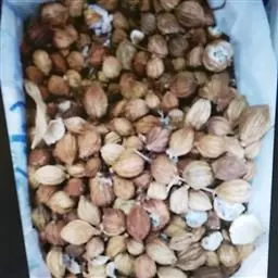 采收成熟果实,剥除果壳。搓洗净果肉,将种子摊于室内阻于,播前在露天湿沙催芽两星期。条播,行距12cm。实生苗长叶2-3片时,间苗移于新的苗畦或营养袋中,畦裁行株距12cm×5cm。经培育1年便可定植于大田。