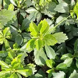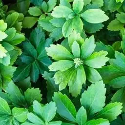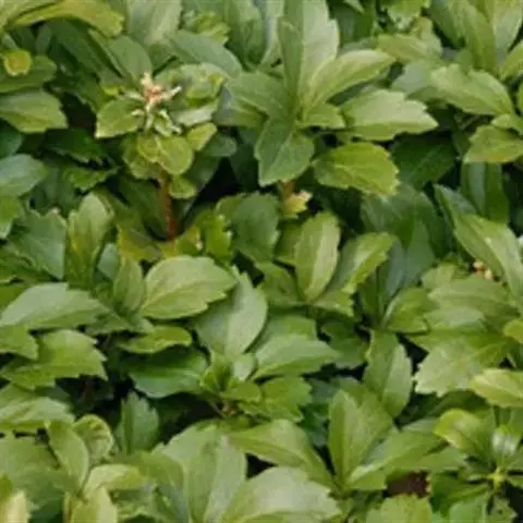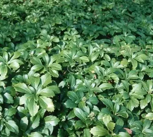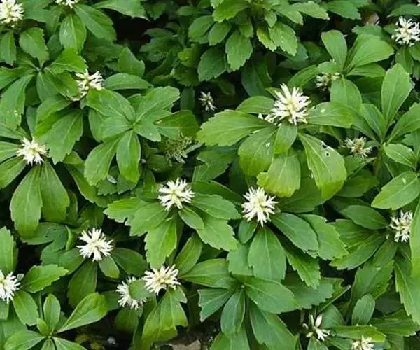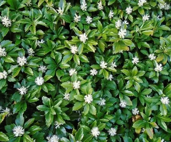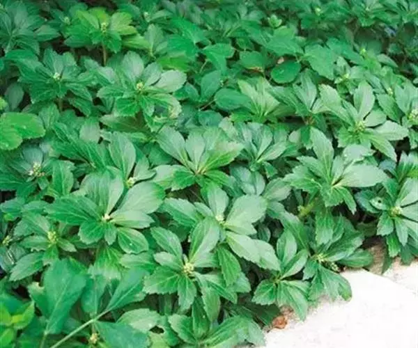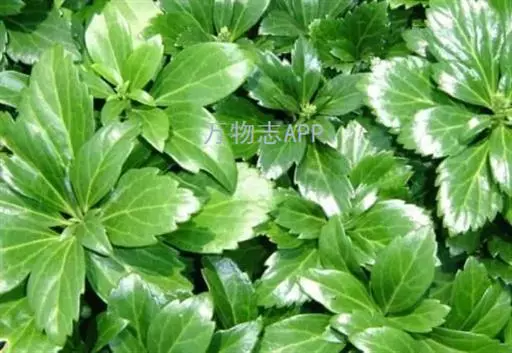顶花板凳果(Pachysandra terminalis Sieb. et Zucc.)又名粉蕊黄杨和顶蕊三角咪,黄杨科顶花板凳属亚灌木,茎稍粗壮,下部根茎状,横卧,屈曲或斜上,叶薄革质,叶片菱状倒卵形,花序顶生,花白色,果卵形,花期4-5月。顶花板凳果性喜阴湿耐寒,自然生长在林下阴湿处,沟谷林下湿处,多生于山谷溪边、杂木林下、海拔1350~2200 m的山谷沟边或林中较阴湿处,产甘肃、陕西、四州、湖北、浙江等省,日本也有分布。顶花板凳果四季常绿,耐阴,易成活,粗放管理,是较好的阴生地被植物。顶花板凳果有吸收室内有害气体的能力,是优良的室内盆栽观赏植物,常配置于遮荫较多的树下、假山变、游园小径旁、楼房拐角处等进行配景,或成片栽植作为观赏地被植物。
