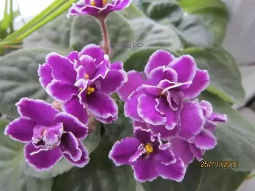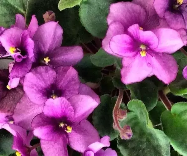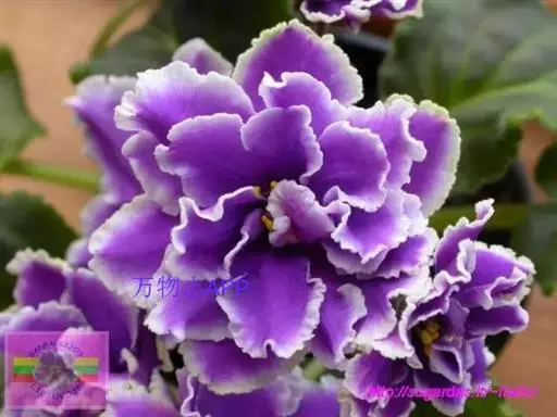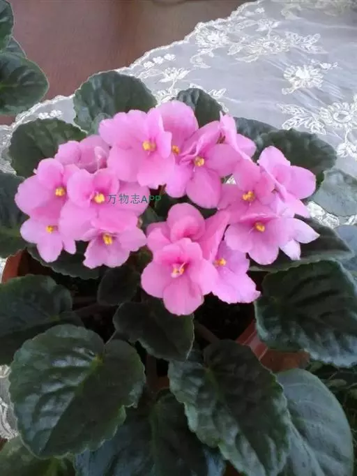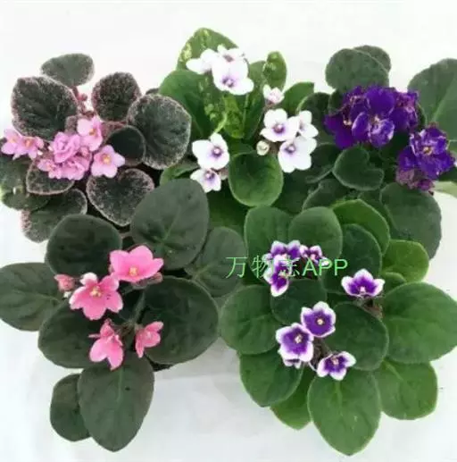 非洲紫罗兰 植株矮小,四季开花,花形俊俏雅致,花色绚丽多彩。由于其花期长、较耐阴,株形小而美观,盆栽可布置窗台、客厅,茶几良好的点缀装饰,是优良的室内花卉。栽培的均为杂交种,园艺品种甚多,有上千个。有单瓣和重瓣,花色有白、粉、红和蓝等。