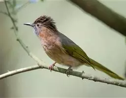 纵纹绿鹎,是鹎科鹎属的一种动物,是体型中等大小鸟类,体长20-24厘米。头绿褐色具明显的冠羽,…
