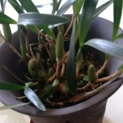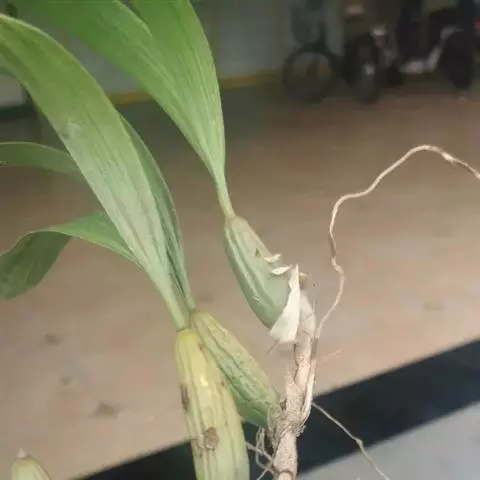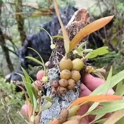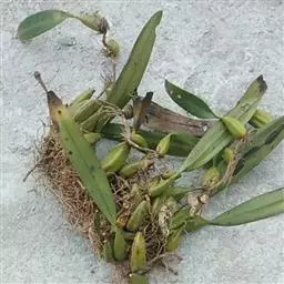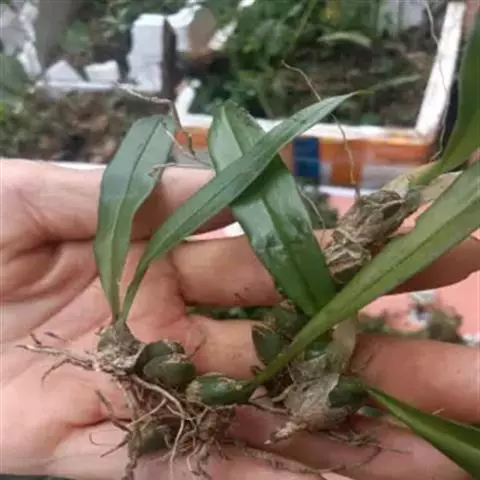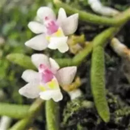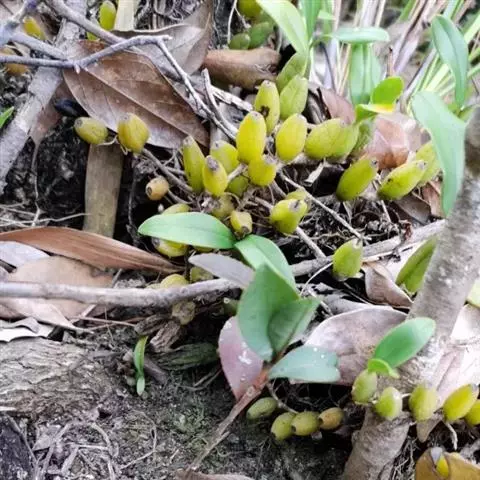 云南石仙桃:根状茎匍匐、分枝,粗4-6毫米,密被箨状鞘,通常相距1-3厘米生假鳞茎;假鳞茎近圆柱状…