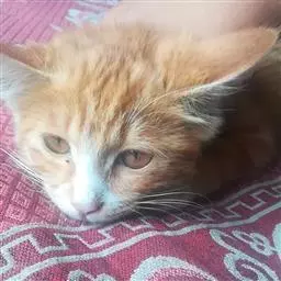 红虎斑色和白色(古典纹、鱼骨纹、斑点纹)RED TABBY & WHITE (classic,mackerel and spotted): 白色带有彩色色块,色块是红色的底色,带有浓艳的红色的斑纹。