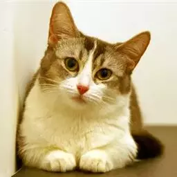 奶油贝壳虎斑色(古典纹、鱼骨纹、斑点纹)CREAM CAMEO TABBY (classic,mackerel,spotted): 底色为浅黄白色。斑纹是奶油色,底层毛白色。