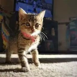 4、问清楚它每日吃什么品牌的猫粮,一天吃几餐,份量多少等等。在最初到家的前一两天内,尽管你的异短宝贝适应力很强,但也会因为环境的变化情绪不够稳定,所以最好食用与原来相同的猫粮。如果你想给你的异短宝宝换食新猫粮,可以在1~2周内逐步完成这个变化,先在它原有的猫粮中掺上少量新猫粮,慢慢增加新猫粮的份量,逐渐让它适应你的食物配方,防止突然改变食物而引起的消化不良。