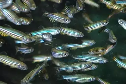 斑马鱼身体延长而略呈纺锤形,头小而稍尖,吻较短,全身布满多条深蓝色纵纹似斑马,与银白色或金黄色纵纹相间排列纹路比较有条理。在水族箱内成群游动时犹如奔驰于非洲草原的斑马群,故此得斑马鱼之美称。斑马鱼和人类基因有着87%的高度相似性,作为模式生物的优势很突出,这意味着其实验结果大多数情况下适用于人体。常可用于水质环境的监测。斑马鱼也是比较好养的一种鱼。