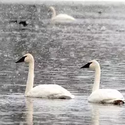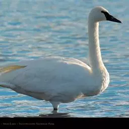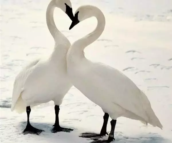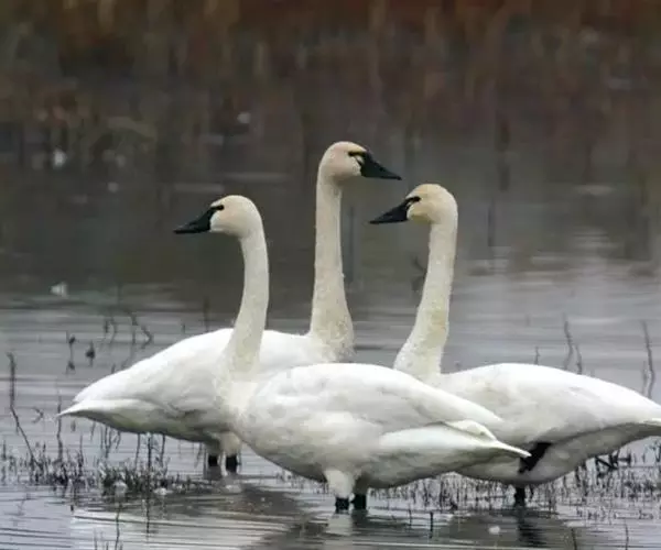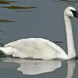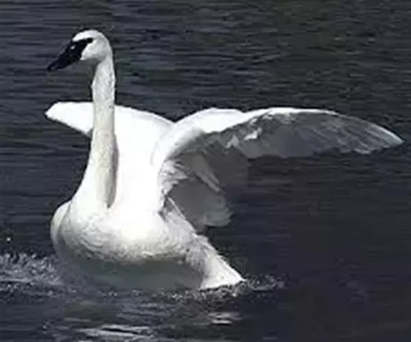 黑嘴天鹅(学名:Cygnus buccinator)是北美最大的原生鸟类,其体重和形态也是生活在地球上最大的水禽。全身洁白,鸟喙黑色,颈特长,在水中游泳时颈垂直朝上,头向前平伸,两翅紧贴两侧身上,身体前部沉入水中较多,后部较少,背部隆起,特别是在侧面观察更为明显。游泳轻盈而缓慢,起飞时两翅不断地拍打水面,两脚在水面奔跑一段距离才能飞起。飞翔时颈向前伸直,两脚伸至尾下,全身除脚和嘴黑色外,其余全为白色。
