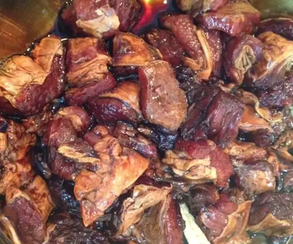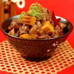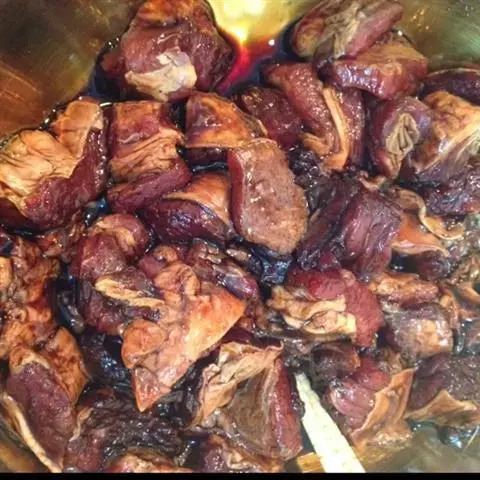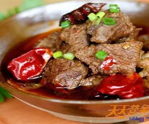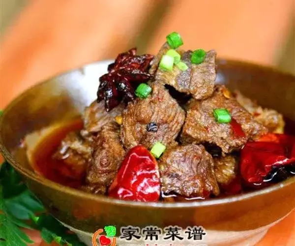 原料: 牛肉600克、葱1根、姜2片、八角1大匙、干辣椒、陈皮各80克 辅料: A料:酒酿、绍酒、糖、酱油各1大匙、酱色 、鸡精、胡椒粉、香油各1/4小匙、水1杯