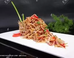 2、锅中倒1杯 油烧热,放入牛肉片小火炸至肉片干酥,捞出。