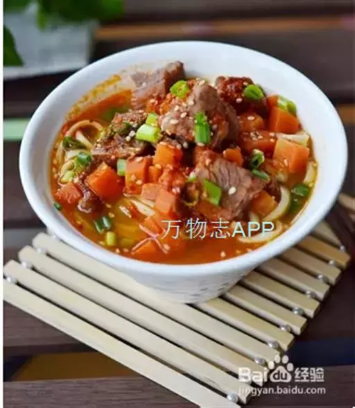 原料:牛腩1000g、萝卜300g、八角10g、桂皮5g、香叶5g、草果5g、生姜10g、豆瓣酱30g、麻椒5g、干辣椒10g、盐粒1茶匙、植物油20g