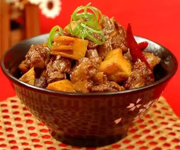 川辣红烧牛肉 主料:牛 肋骨肉土豆(或黄豆、白萝卜)