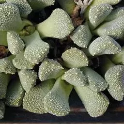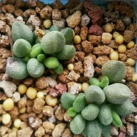 五十铃玉是番杏科窗玉属的多年生肉质植物,别名有“棒叶花”“婴儿脚趾”。植株高5厘米,叶片淡绿色,肉质,…