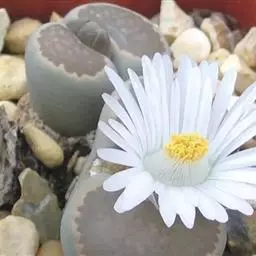 生石花,番杏科生石花属多年生肉质草本植物。植株几乎无茎;花朵较大,颜色艳丽,呈多边形,…