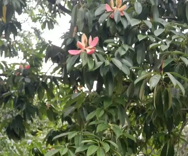 红色木莲是中国国家二级保护植物,常绿阔叶乔木,高可达30米,胸径达40—60厘米,能耐-16℃低温。叶浓绿、秀气、革质,全缘。树形优美,花色艳丽芳香。适应性强,高山、丘陵长势均佳,一年生苗若能搭棚蔗荫,肥培管理到位,苗高能达50厘米以上。5年生苗就开花结果。花期5-6月,花生于当年生嫩枝顶端。花有两大特色:一是含苞待放时,颜色最为艳丽美观;二是花色随气温而变,气温越低,颜色越红,气温升高,颜色则淡。果熟期9-10月,深红色果实悬挂枝头,是秋天一大景观。