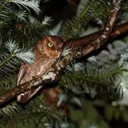 黄嘴角鸮:小型鸟类,体长18-21厘米。的茶黄褐色角鸮。眼黄色,嘴奶油色,特征为无明显的纵纹或横斑,…