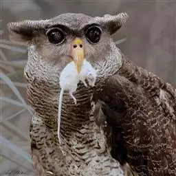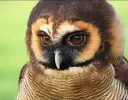 褐林鸮是夜行猛禽。喙坚强而钩曲。嘴基蜡膜为硬须掩盖。翅的外形不一,第五枚次级飞羽缺。尾短圆,…