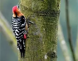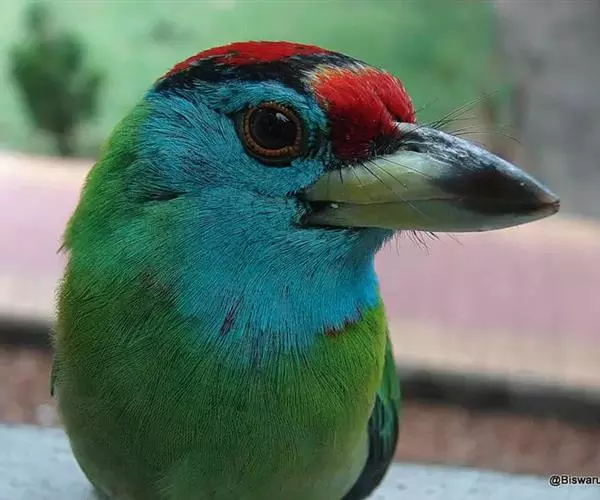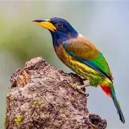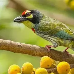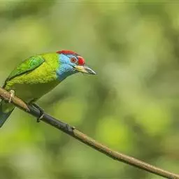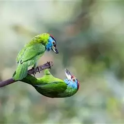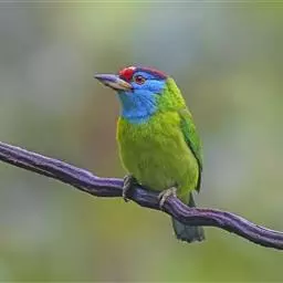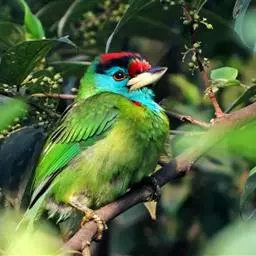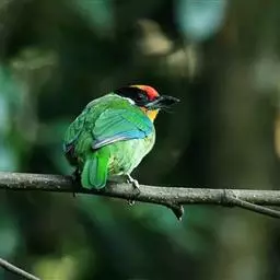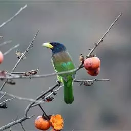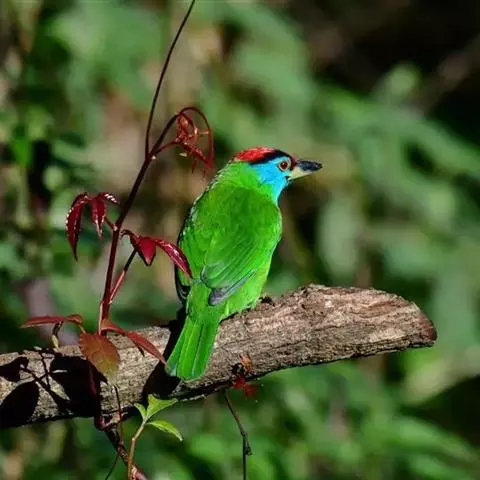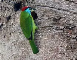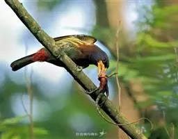 因为拥有良好的保护色,若不鸣叫很难发现它们的身影。以果实、浆果为主食,繁殖期育雏时则常以昆虫喂食幼鸟。常发出单调浑厚的“咯、咯、咯…”叫声,像极了和尚敲打木鱼的声音,加上头部参杂红、黄、蓝、绿、黑五色,所以又称为“森林里的花和尚”。繁殖期会在树干以其强而有力的嘴喙啄洞,巢筑于其内。