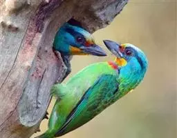 本科鸟体型短而胖,颜色鲜艳,不擅长飞行,是森林猛禽很常猎取的猎物。以果子和昆虫为主食,会自行啄树洞为巢,但嘴巴不像啄木鸟般坚硬,只能找枯树或木质较软的 须鴷科 树种。