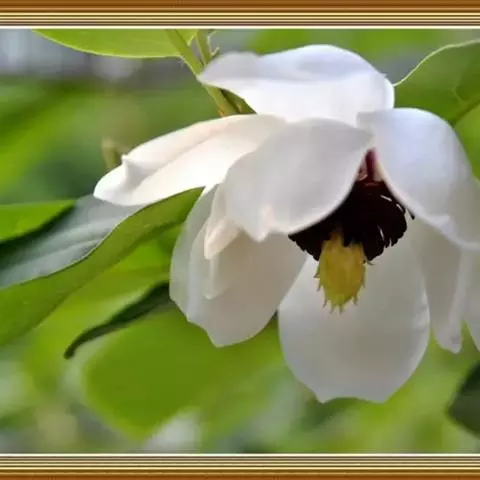 花白色,有芳香,直径15-20厘米;花被片9-12,厚肉质,倒卵形,长6-10厘米,宽5-7厘米;雄蕊长约2厘米,花丝扁平,紫色,花药内向,药隔伸出成短尖;雌蕊群椭圆体形,密被长绒毛;心皮卵形,长1-1.5厘米,花柱呈卷曲状。