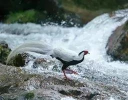 白颈长尾雉:大型鸡类,体长81厘米,体型大小和雉鸡相似。雄鸟头灰褐色,颈白色,脸鲜红色,其上后缘有…