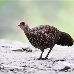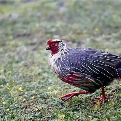 血雉雉科血雉属鸟类,别名血鸡、松花鸡,血雉的雄鸟大覆羽、尾下覆羽、尾上覆羽、脚、头侧、腊膜为红色,…