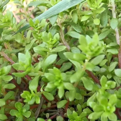 多年生草本,高15-25厘米。茎下部节上生根,上部直立,无毛。叶对生,倒卵形至倒卵状匙形,长17-20毫米,宽6-8毫米,先端钝圆,基部渐狭,入于假叶柄,基部有短距。